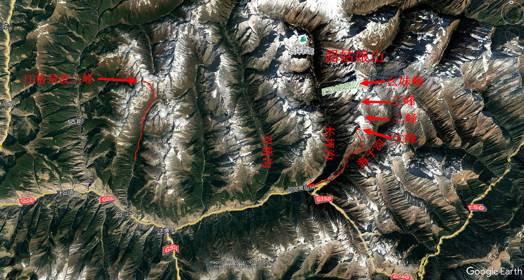 背后正是四姑娘二峰、三峰、幺妹峰。